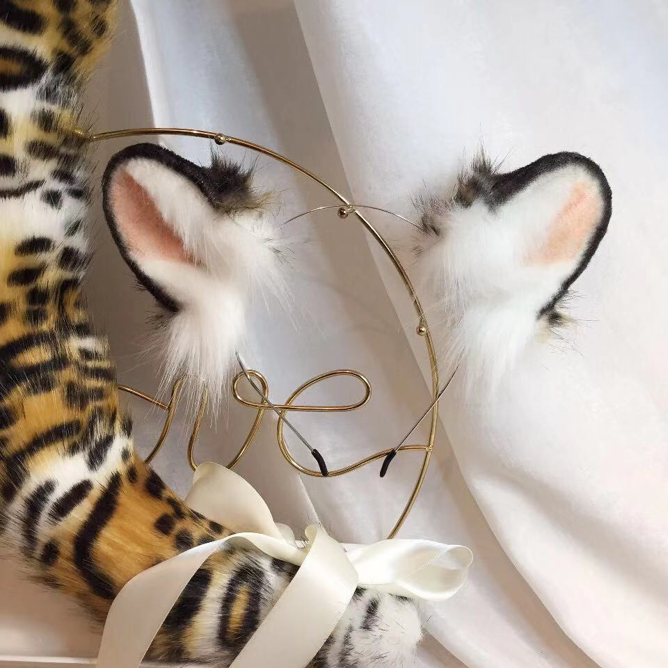 虎トラ 動物コスプレ 耳7cm/尻尾80cm 仮装 萌え ふわふわ アニマル変装 高品質 手作りイベント/ハロウイン/コスプレ小物-1