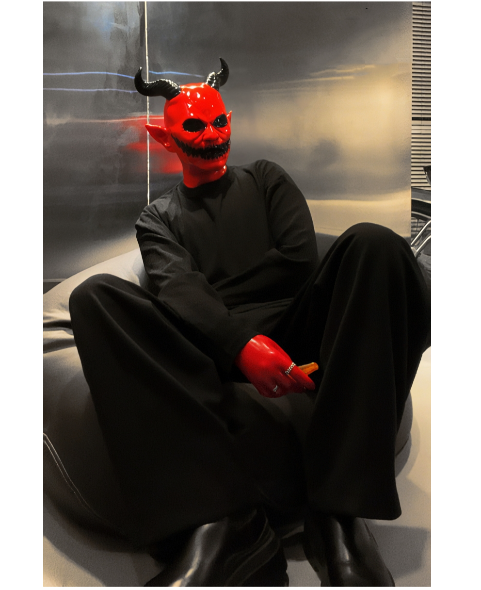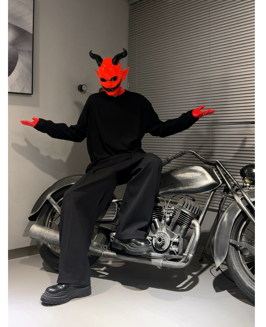 悪魔 全頭マスク レッド/ブラック シリコン素材製 ハロウィン用品 コスプレ変装-1