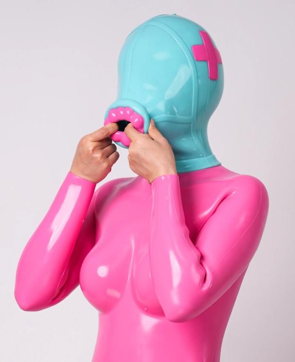 ナース全頭マスク ギャグ付き シリコン素材製 コスプレ用マスク 男女兼用-2