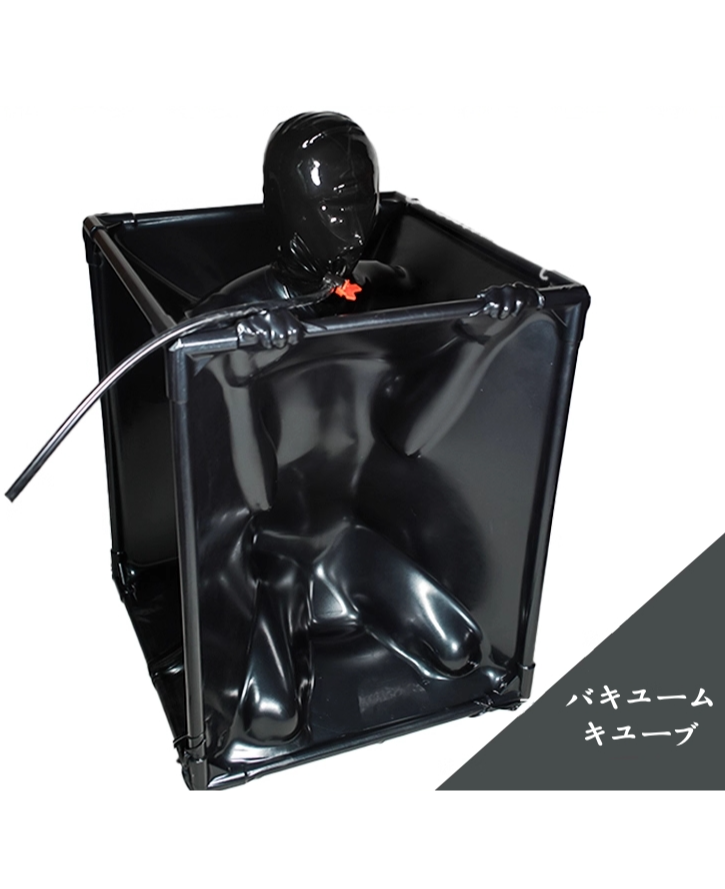 ラテックス バキュームキューブ 黒色 厚さ0.4mm 頭だし/呼吸用パイプ付き リモコン付き電動エアーポンプ カラー変更可能 男女兼用 リモコン遠隔操作&一人使用可能 PVCフレーム 収納&インストールが便利